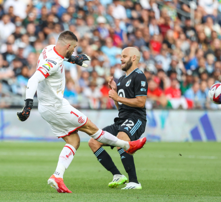 El 2-2 llegó por la vía del penal, luego de un codazo de Hassani Dotson sobre Marcel Ruiz dentro del área. El árbitro Víctor Rivas revisó la acción en video y decretó la pena máxima en favor de los rojos y la expulsión del jugador de Minnesota.