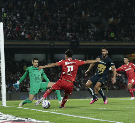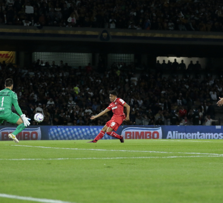 Pumas logró la igualada pronto, al 23’, con buena acción a cargo de César Huerta, quien hizo pared con Gustavo del Petre; este le devolvió un gran balón al área, para que el “Chino” definiera de zurda “de tres dedos”, en el 1-1.