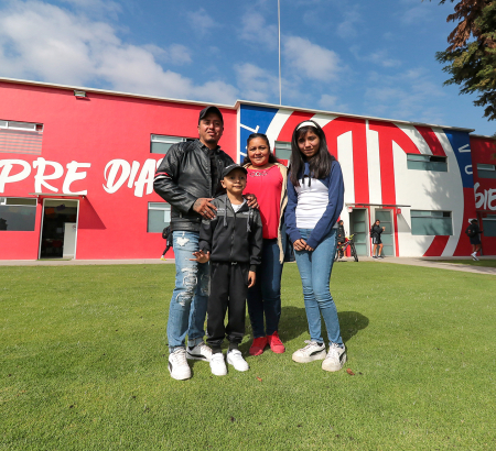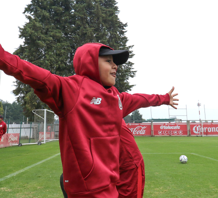 Acompañado de sus padres, Juan Alfredo Alfaro González y Mariana Martínez Cuadros, el pequeño de 7 años de edad recibió el trato de un Diablo honorario. Su rostro se iluminó en su llegada a las Instalaciones de Metepec, y en todo momento lució una enorme sonrisa.