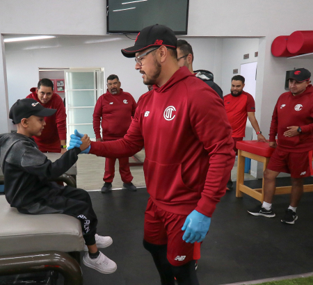 Saludó al Director Técnico Carlos María el “Tanque” Morales, quien le obsequió una sudadera de entrenamiento color vino que recibió con mucha emoción. Además, el estratega compartió con él un emotivo mensaje.