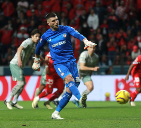 Tiago Volpi marcó de derecha desde los once pasos, clavando el balón al centro; engañando a Acevedo para poner el 1-0 para los Diablos, al 75’