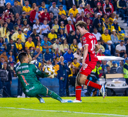 América tuvo una muy clara al 11’, cuando Tiago Volpi entregó su despeje; Alan Cervantes puso el balón a Rodrigo Aguirre, quien tras el control disparó, con el arquero adelantado, pero el balón se fue desviado.